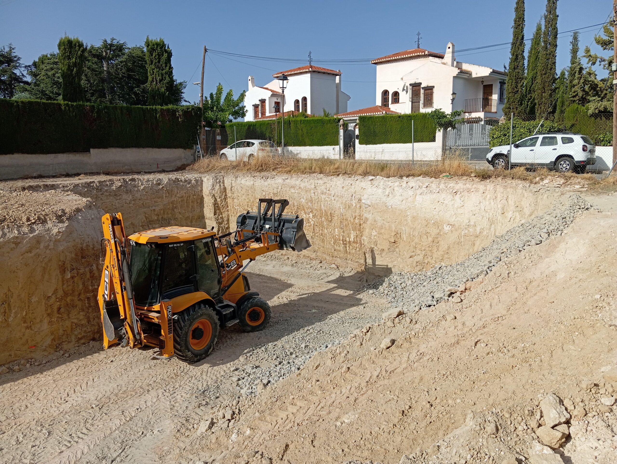 En este proyecto, el equipo de Excatrans Grupo Velasco ejecutó los trabajos de movimiento y relleno de tierras, nivelación precisa del terreno y compactación para evitar asentamientos futuros en Gójar (Granada).